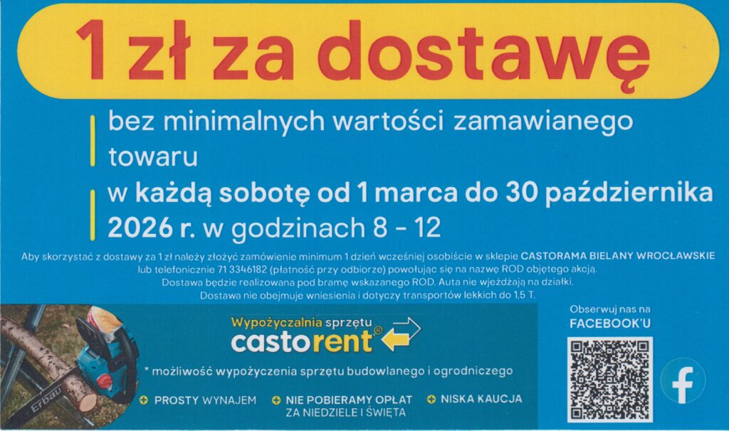 - decyzją OZ PZD we Wrocławiu od 1 stycznia 2026 obowiązuje nowa podwyższona opłata ogrodowa od nowych działkowców (tzw. wpisowe) w wysokości 400 zł.